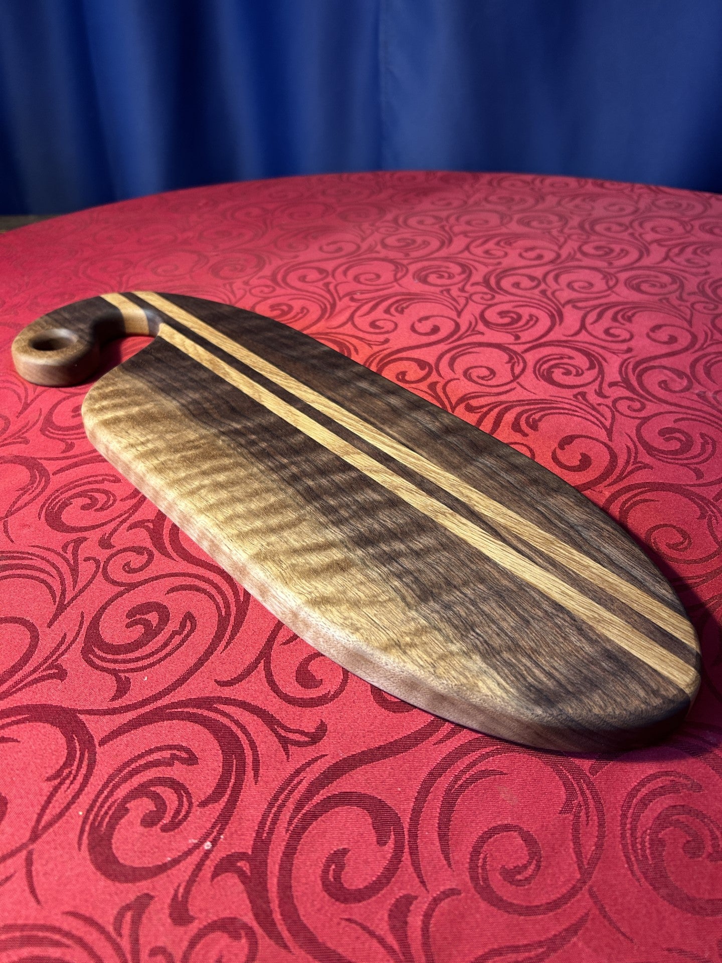 The bold walnut grain and its asymmetrical shape make this a very characterful piece.